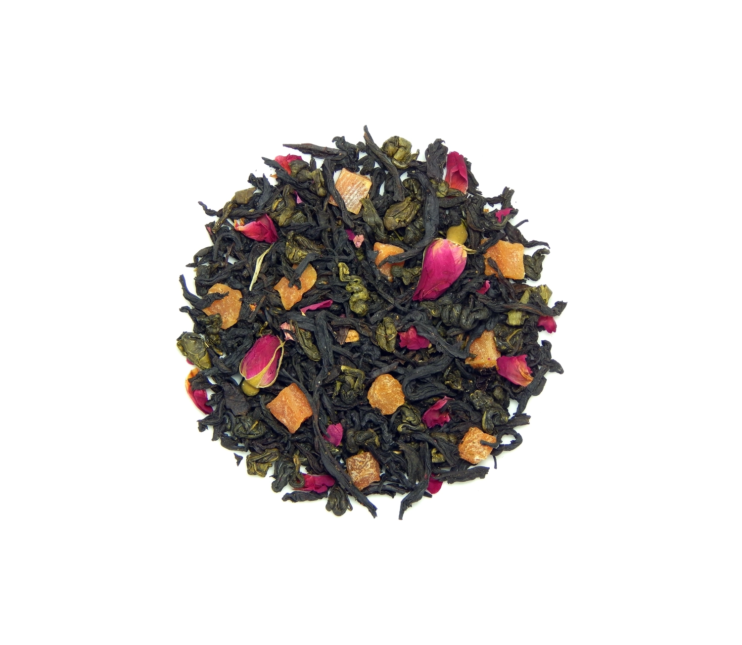 Чай черный "1002 ночь" Абрикос Манго - обладает изысканным ароматом тропических фруктов и терпким вкусом. Состав: Смесь черного и зеленого чая, сублимированный абрикос, бутоны розы, цукаты ананаса, манго. Фасовка 1кг
