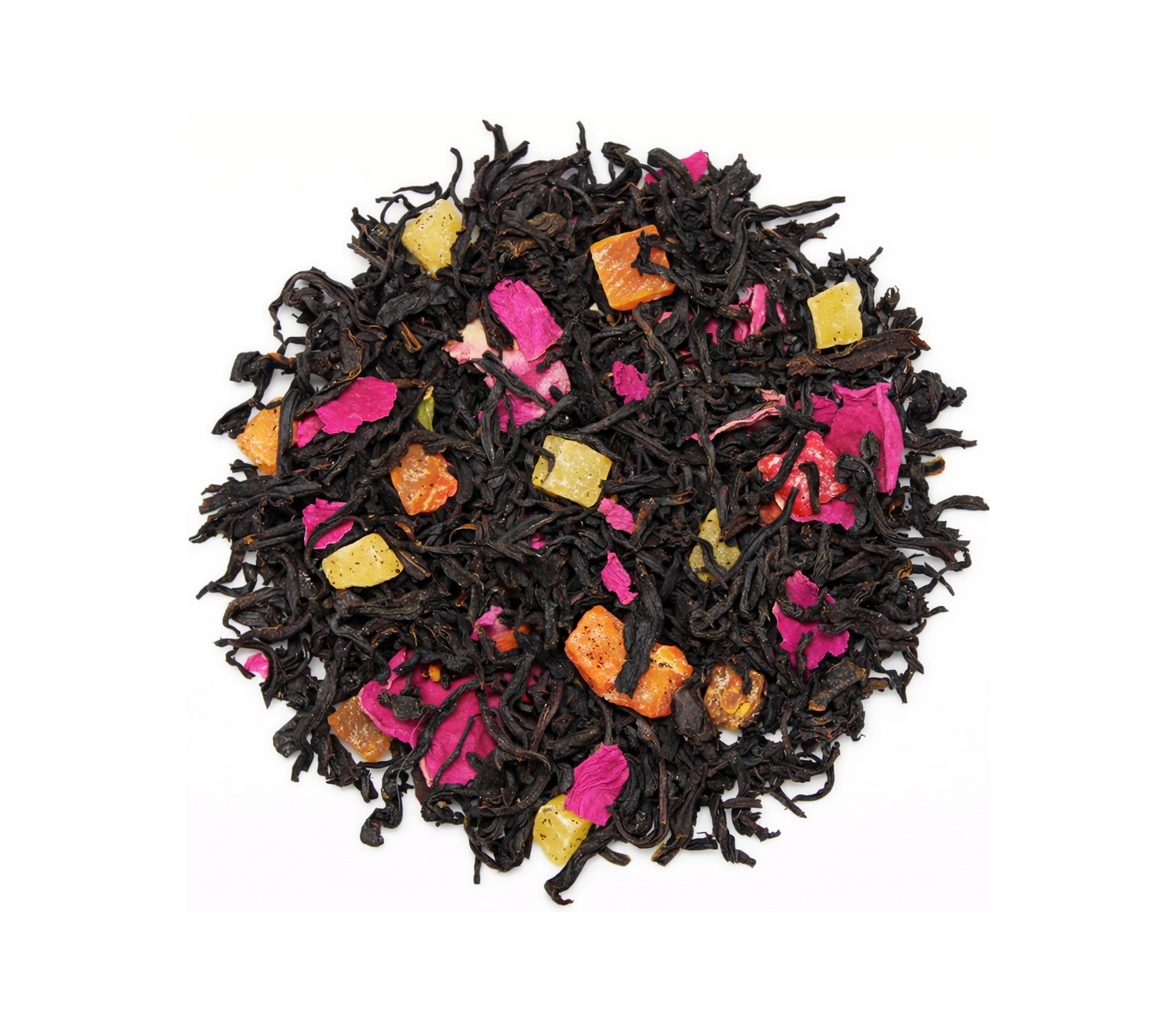 Чай черный Ананас и манго 100 грамм - обладает ароматом тропических фруктов. Состав: вкусный цейлонский чай, цукаты ананаса и манго.