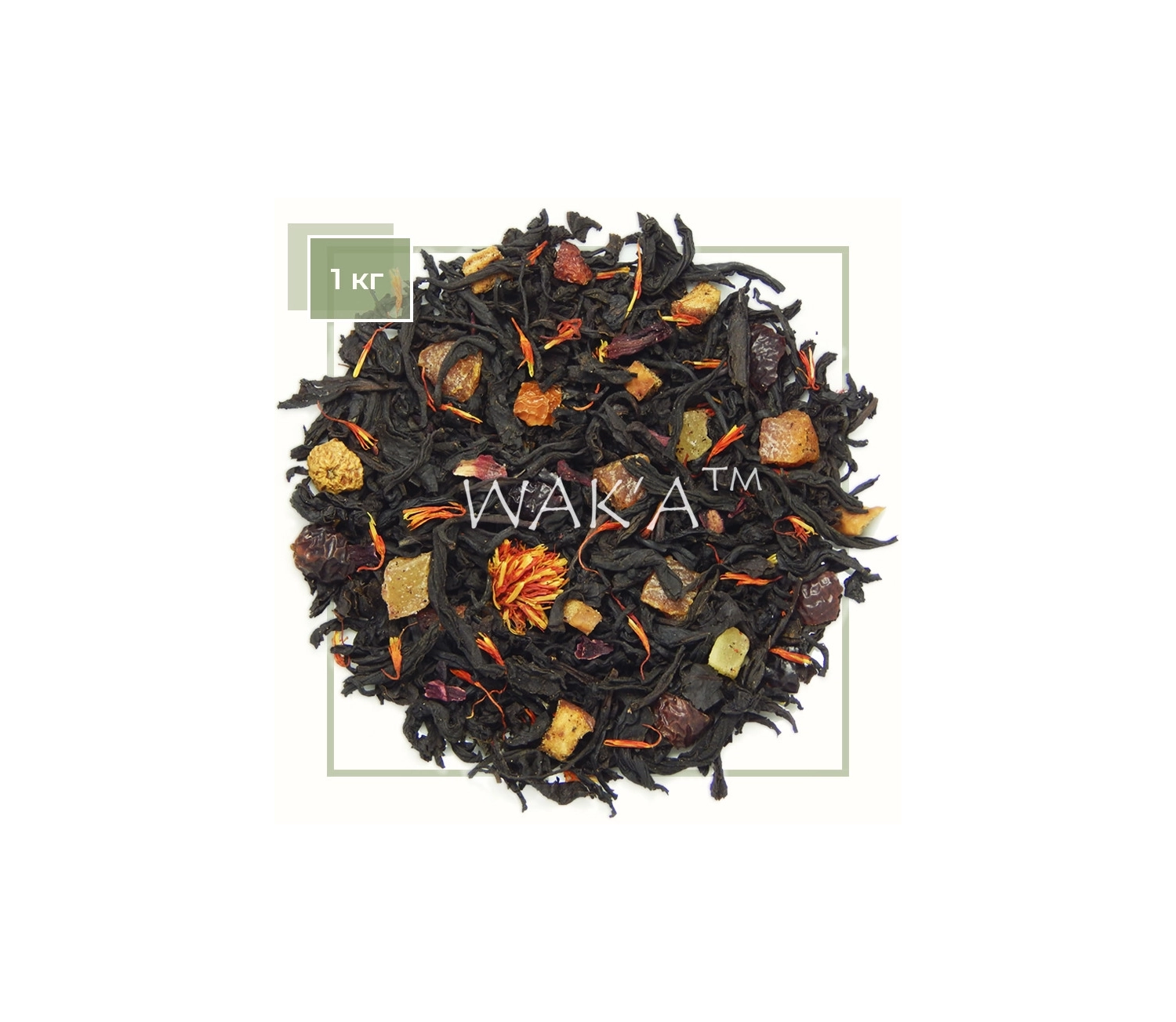 Чай черный Огонь джунглей Состав: цейлонский чай, лепестки пиона, гибискуса, кусочки манго, ананаса, аромат рома, вишни и персика.