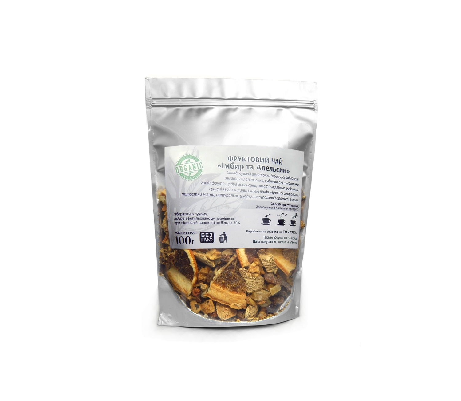 Ароматизированный фруктовый чай Waka "Имбирь Апельсин" 100 грамм Состав: кусочки сушеного имбиря, слайсы сублимированного апельсина, слайсы сублимированного грейпфрута, кусочки сублимированного яблока, цедра апельсина, цедра лимона, сублимированная калина, кусочки абрикоса, щепотка мяты, натуральный ароматизатор