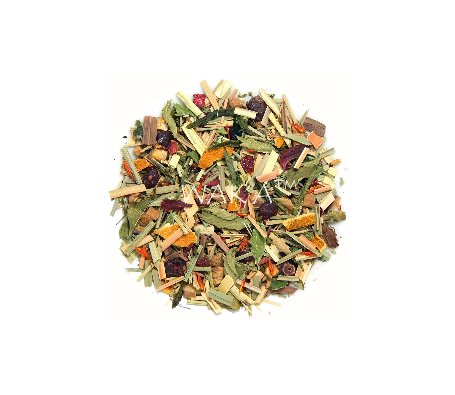 Чай Мужская сила TM Waka 1кг Состав: лимонная трава, имбирь, Иван-чай, чебрец, цедра мандарина, цедра лимона, чай зеленый китайский высшего сорта, фенхель, шиповник, корица, кардамон, укроп, гвоздика, петрушка, цветы василька, лепестки цветов, специи, натуральный ароматизатор