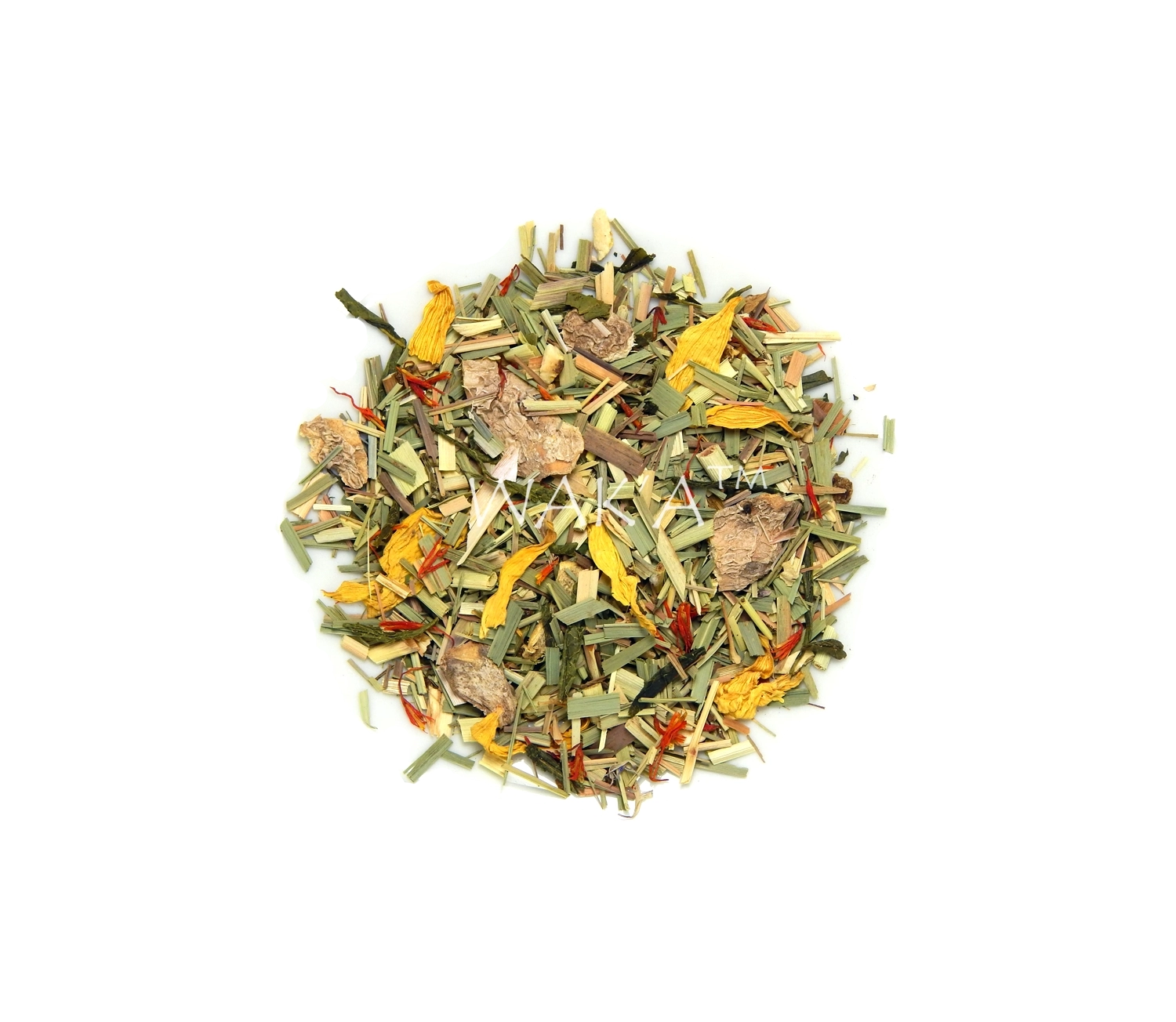 Чай травяной Имбирь лимон 1 кг Состав: сушеный имбирь, лимонная трава, цедра лимона, цедра апельсина, лепестки календулы, мята, эвкалипт, сбор высокогорных трав и цветов
