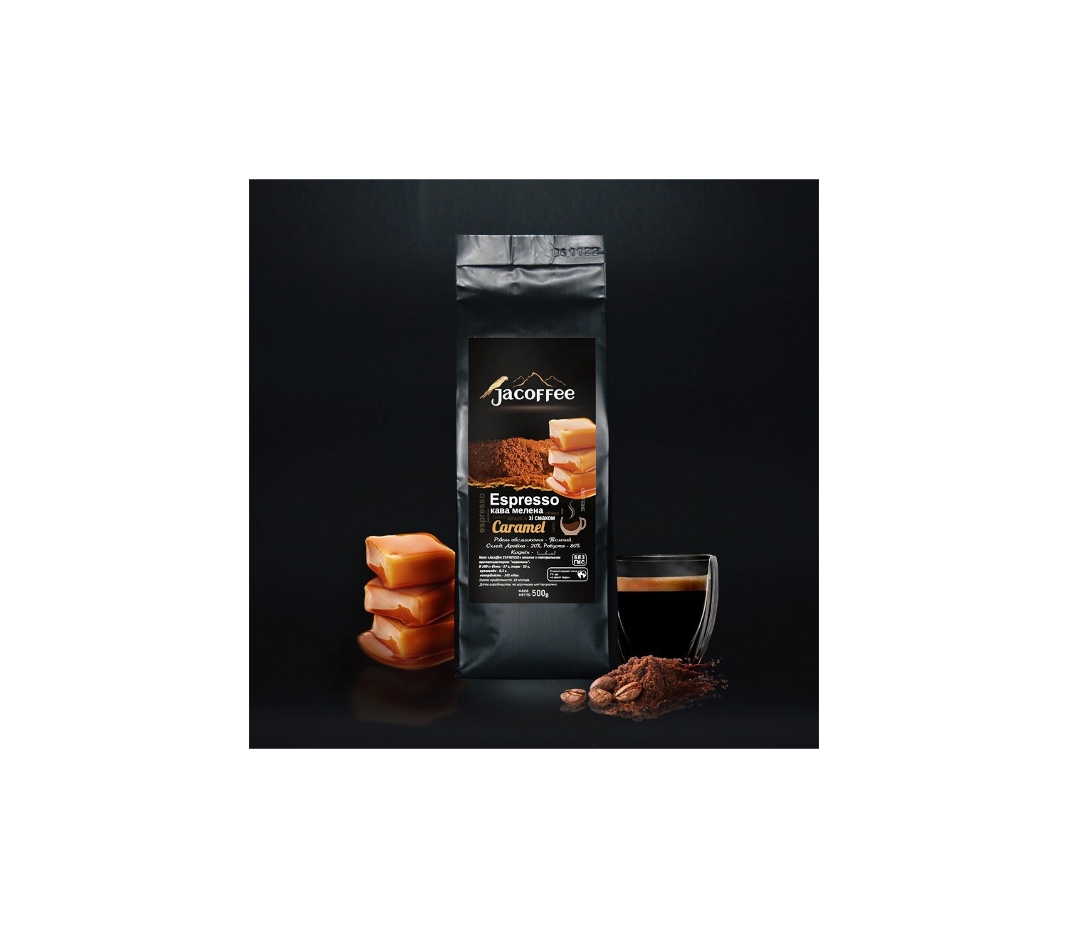Кофе молотый со вкусом Карамель 500 грамм. Купаж: арабика 20% Бразилия, робуста 80% Вьетнам. В состав входит натуральный ароматизатор "Карамель" стандарта ГОСТ. Не содержит ГМО.