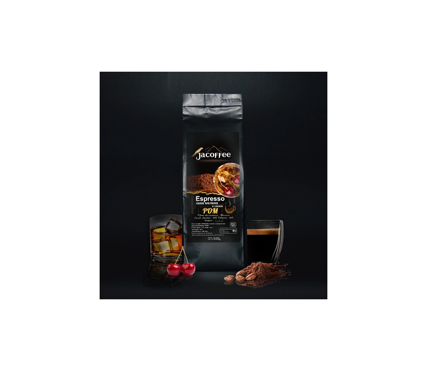 Кофе молотый со вкусом Ром 500 грамм. Купаж: арабика 20% Бразилия, робуста 80% Вьетнам. В состав входит натуральный ароматизатор "Ром" стандарта ГОСТ. Не содержит ГМО.