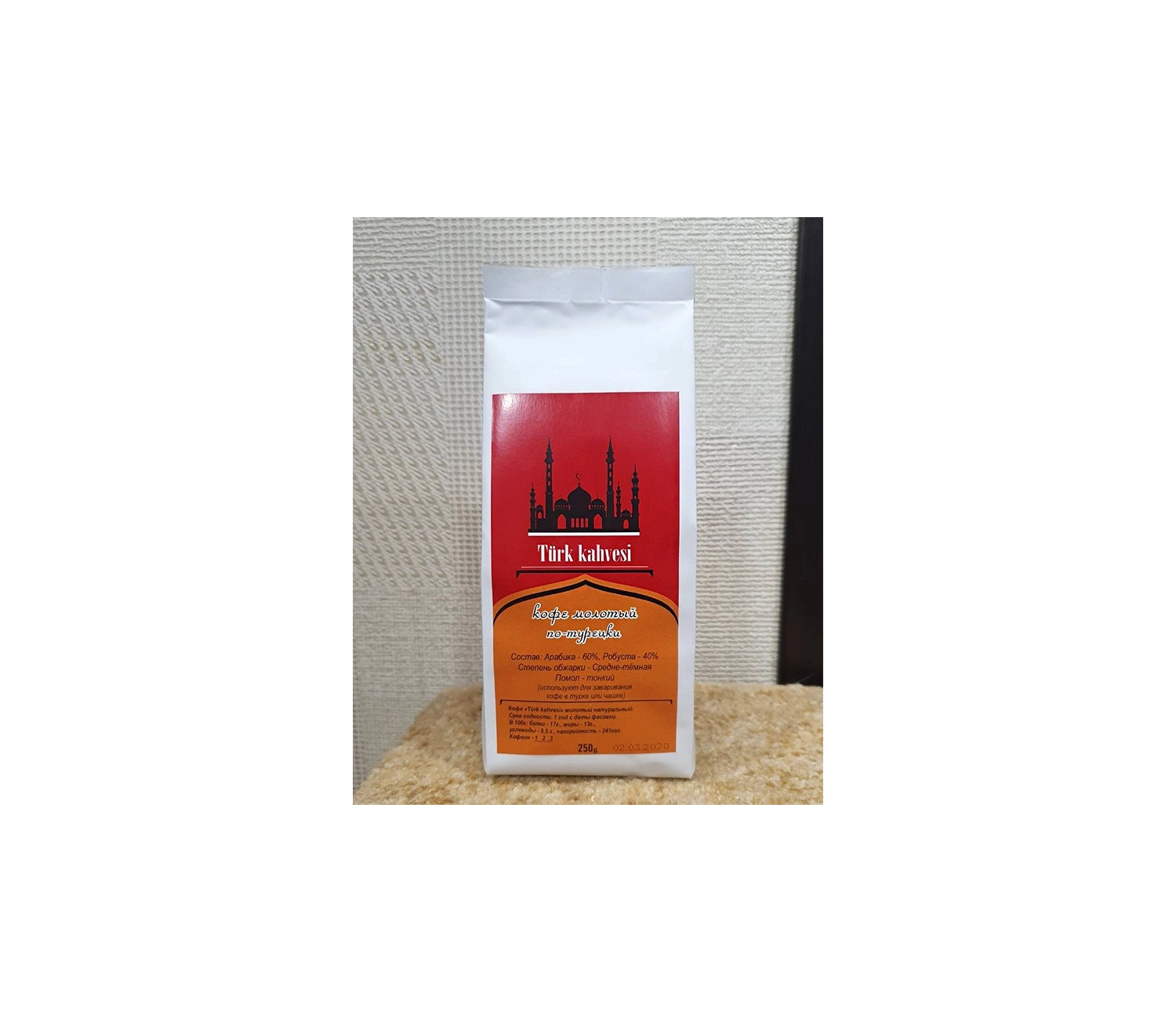 Кофе молотый "По-Турецки" 250 грамм. Самый тонкий помол кофе подходит только для заваривания в турке либо чашке. Такой вид измельчения придает напитку максимальную крепость и насыщенный вкус. Купаж: Арабика 60%, Робуста 40%
