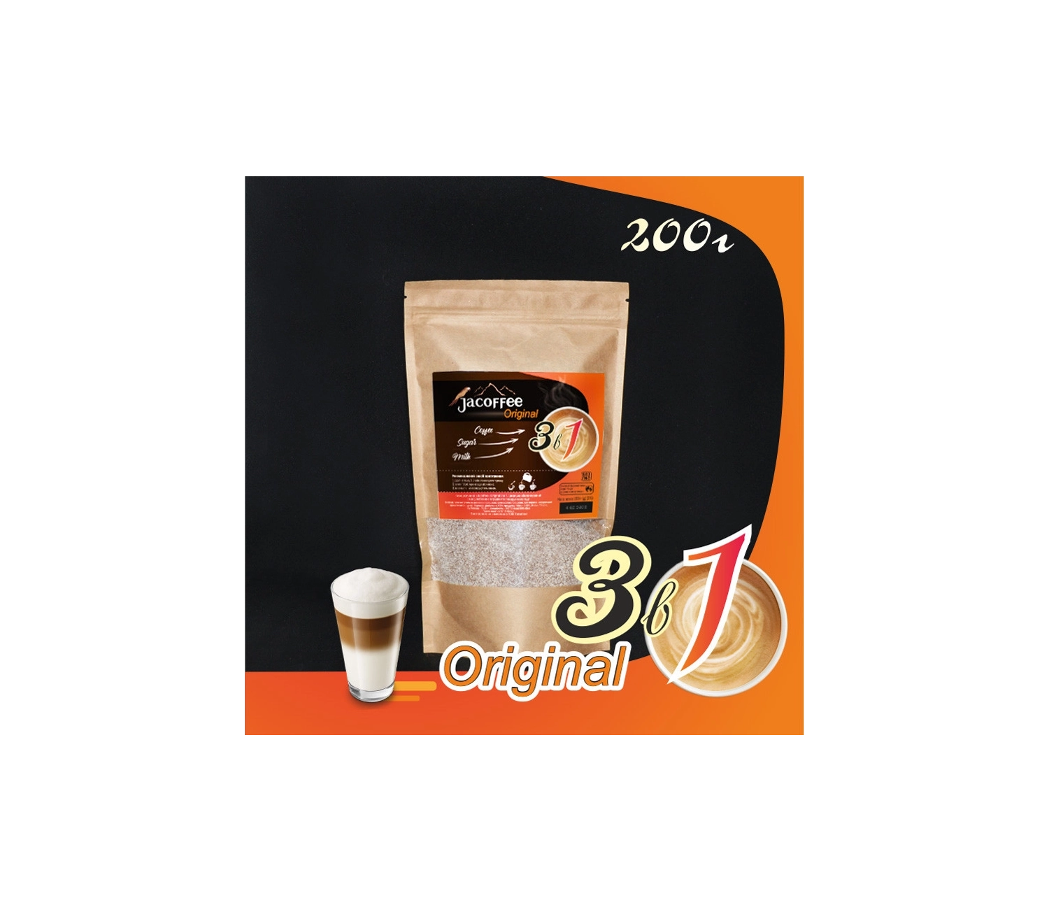 Кофе растворимый Jacoffee 3в1 Original 200 грамм. Насыщенный, сбалансированный, ярко выраженный вкус качественного напитка 3в1 в удобной упаковке, по доступной цене. Способ приготовления: насыпьте в чашку 3-4 чайных ложки кофе 3в1, залейте кипятком (150 мл) и хорошо перемешайте напиток. Приятного аппетита)