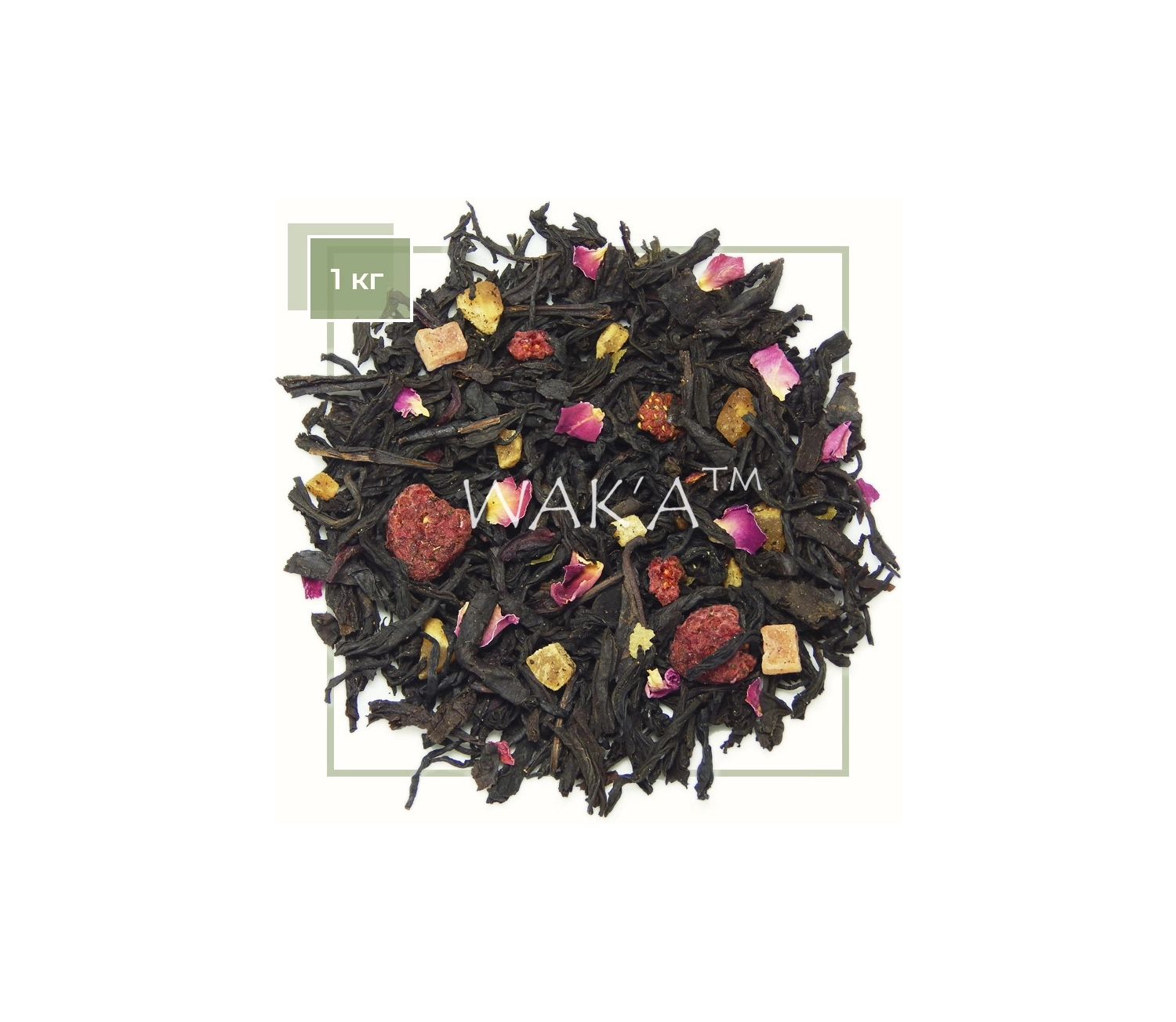 Чай чорний Малиновий йогурт 1 кг Склад: цейлонський чай, ягоди малини, листя малини, шматочки йогурту