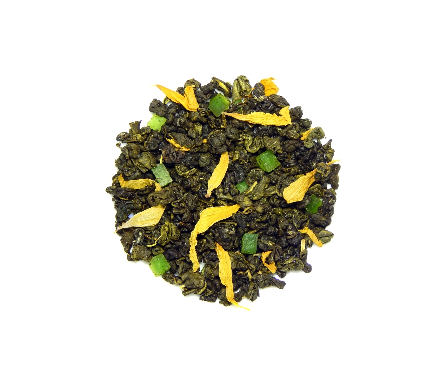 Чай зелений ароматизований зі шматочками саусепа, фасування 100 грамів