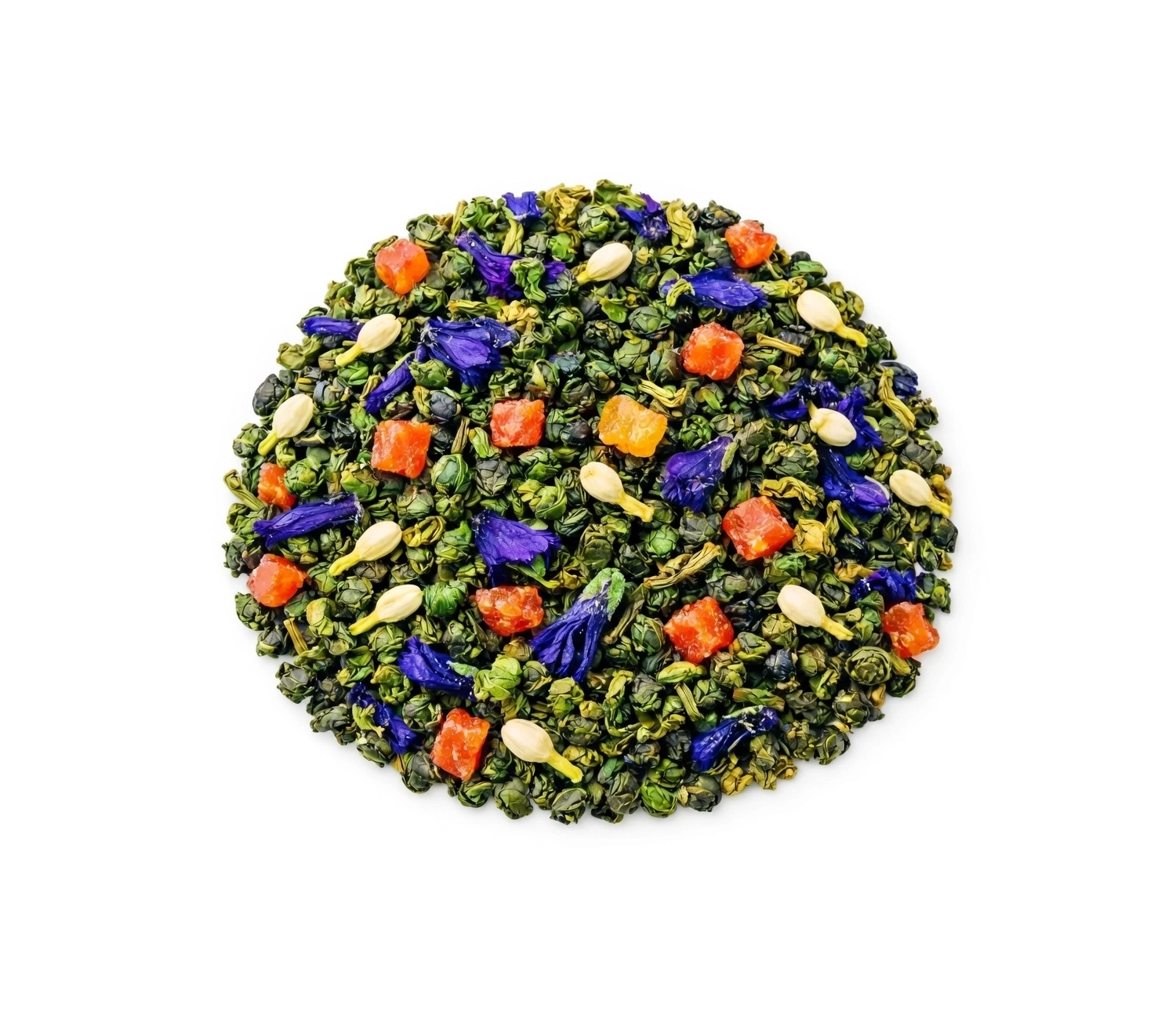 Зелений чай «Сапфіровий захід» Waka без гіркоти – 400–500 чашок м'якої бадьорості. Вигідний обсяг для кав'ярень, офісів і тих, хто вже не уявляє вечорів без фантазії про поїздку на Балі.