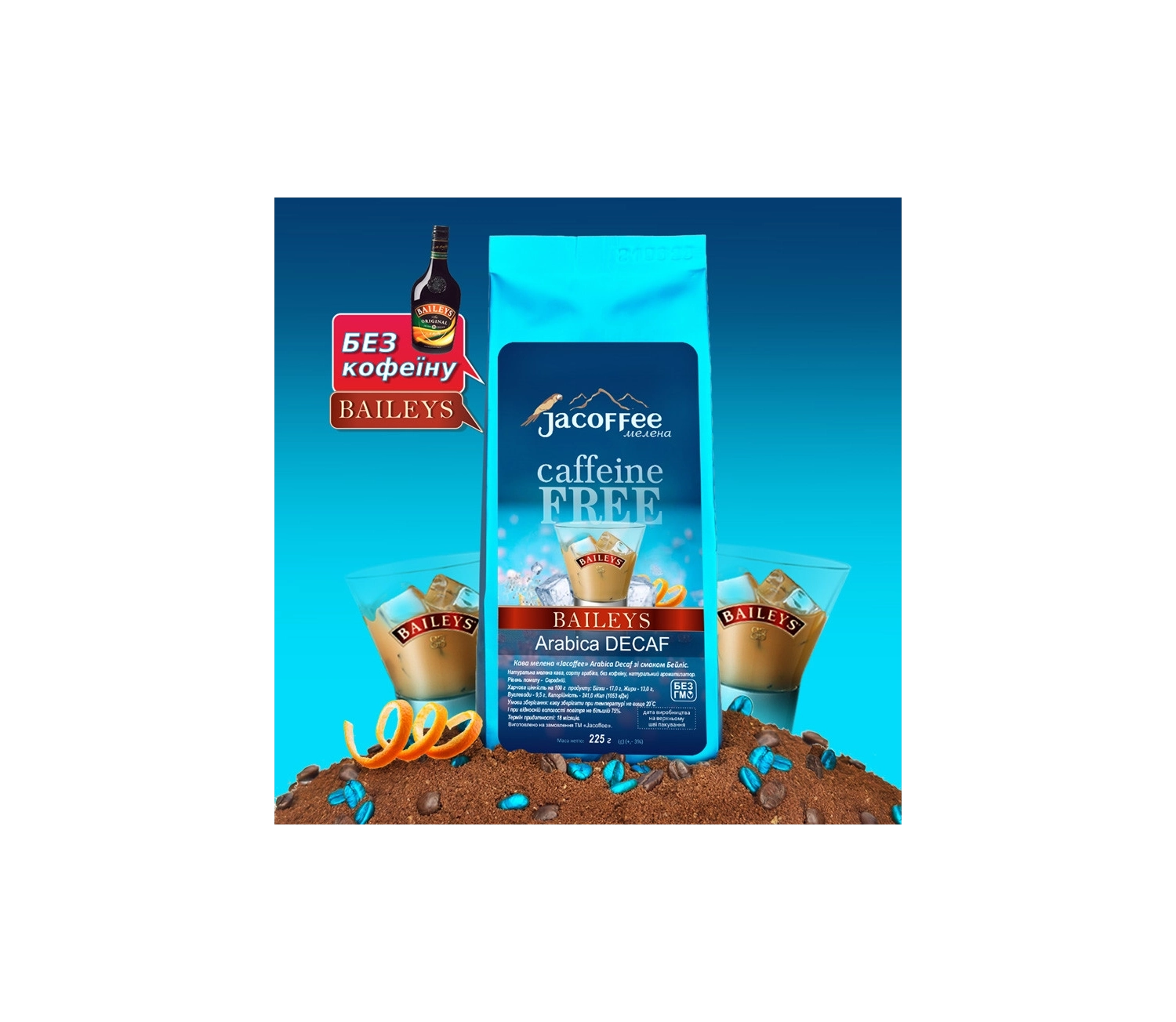Кава мелена Jacoffee Arabica без кофеїну зі смаком Бейліз, 225 г