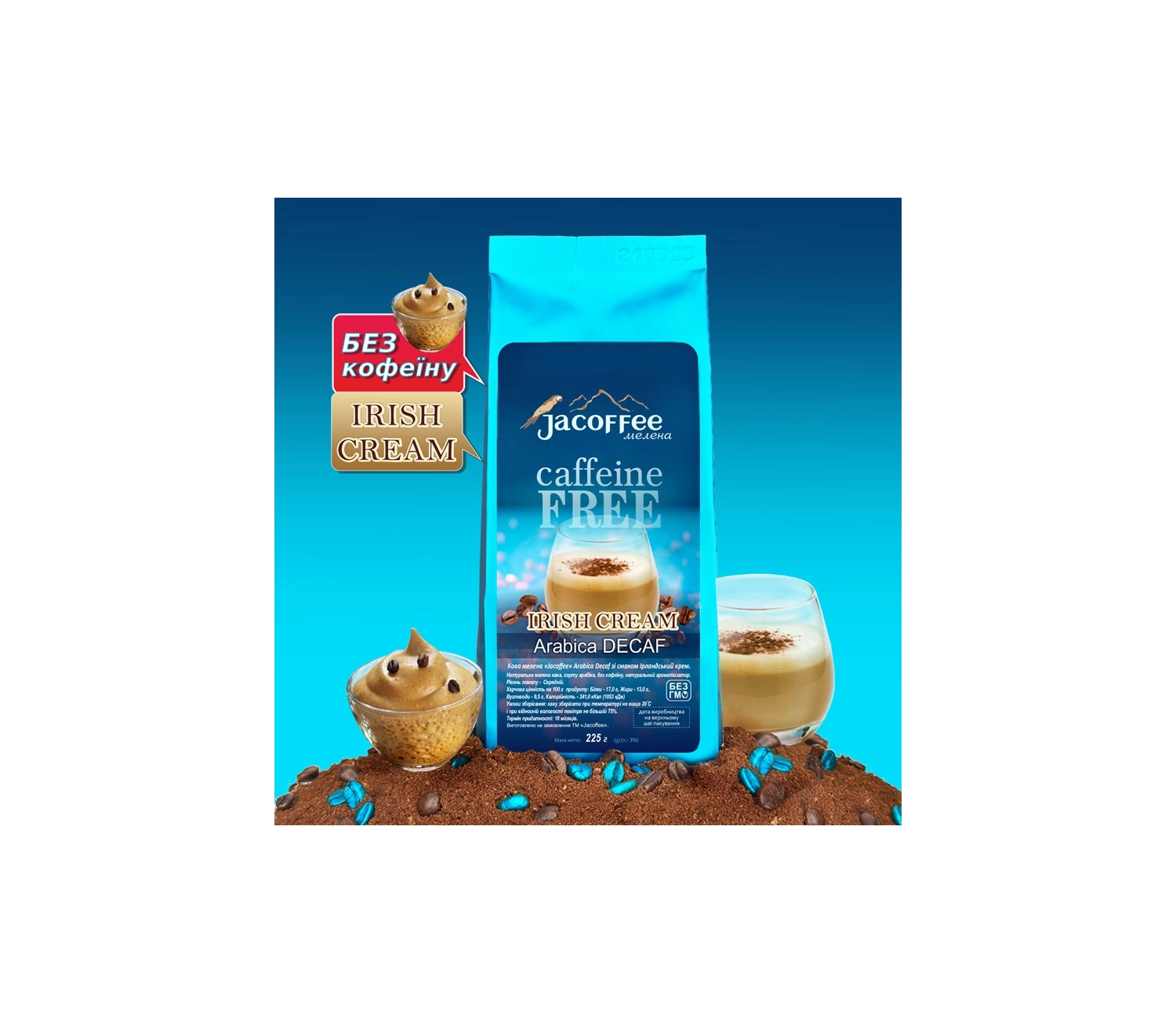 Кава мелена Jacoffee Arabica без кофеїну зі смаком Ірландський крем, 225 г
