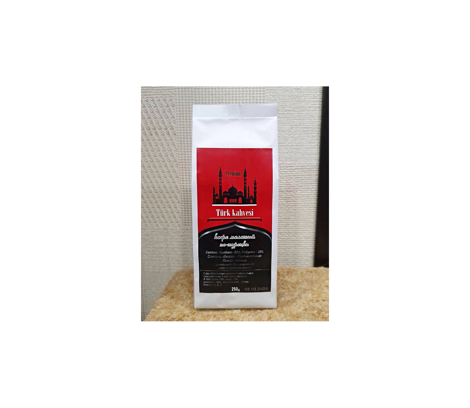 Кава мелена "По-турецьки" 250 грамів. Найтонший помел кави підходить тільки для заварювання в турці або чашці. Такий тип подрібнення надає напою максимальну міцність і насичений смак. Купаж: елітні сорти бразильської Арабіки 80% и індонезійської Робусти 20%