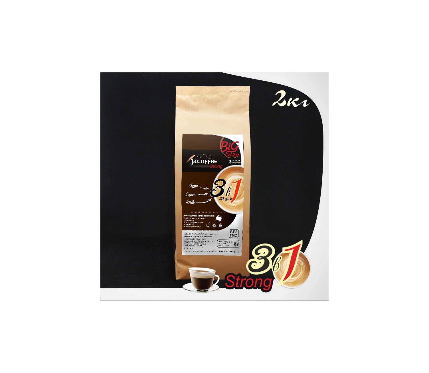 Кава 3в1 Jacoffee Strong, 2000 грам Спосіб приготування: насипте в чашку 3-4 чайних ложки кави 3в1, залийте окропом (150 мл) і добре перемішайте напій. Смачного)